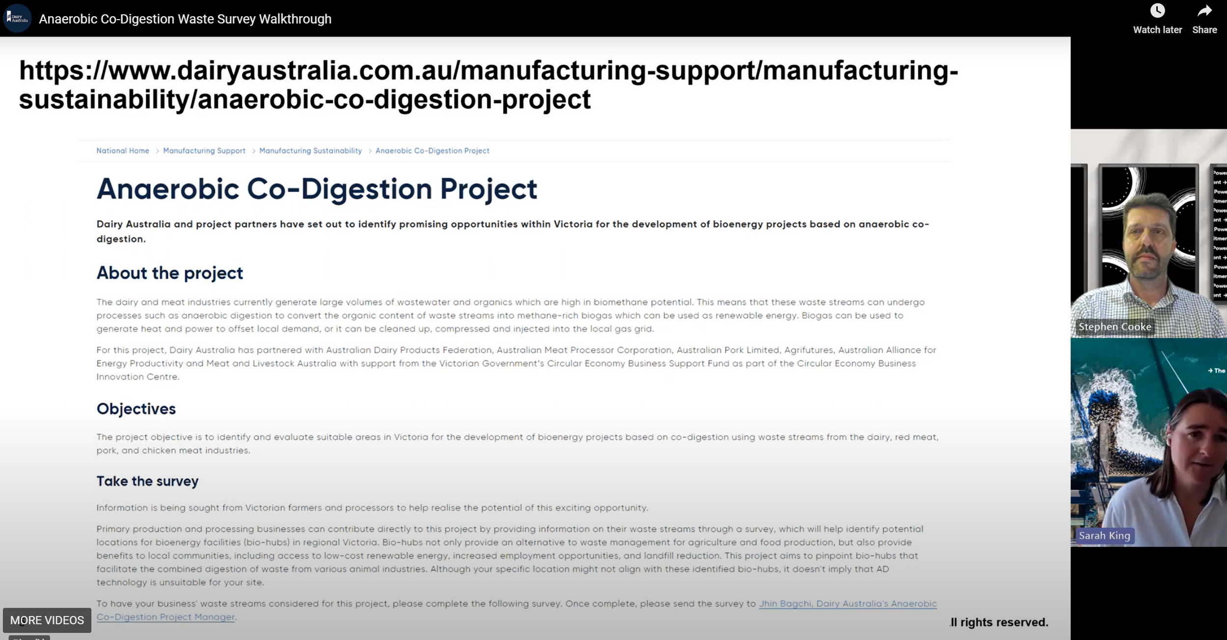 Dairy Australia partnered with Australian Dairy Products Federation, Australian Meat Processor Corporation, Australian Pork Limited, Agrifutures, Australian Alliance for Energy Productivity and Meat and Livestock Australia with support from Sustainability Victoria though the Waste to Energy Fund.